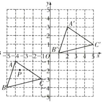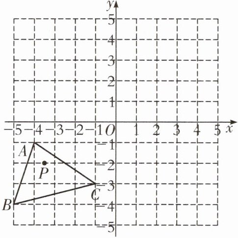 16. (13分)如图,在平面直角坐标系中,三角形$ABC三个顶点的坐标分别为A(-4,-1),B(-5,-4),C(-1,-3)$.已知三角形$A'B'C'是三角形ABC$经过平移得到的,且三角形$ABC中任意一点P(x_{1},y_{1})经过平移后的对应点为P'(x_{1}+6,y_{1}+4)$.