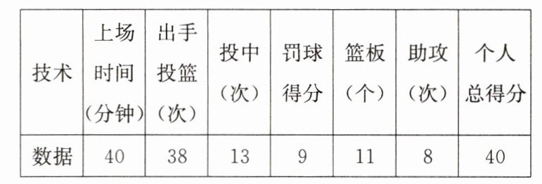 15. (10分)在某次篮球联赛中,一位球员在比赛中的技术统计如下表所示: