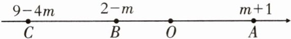 16. (8分)如图,数轴上点O为原点,点A,B,C表示的数分别是$m+1$,$2-m$,$9-4m$。
