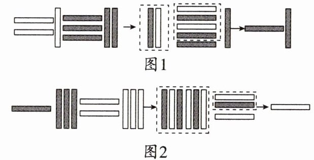 3. 在《九章算术注》中用不同颜色的算筹(小棍形状的记数工具)分别表示正数和负数(白色为正,黑色为负),如图1表示的是$(+21)+(-32)= -11$的计算过程,则图2表示的过程是在计算 (