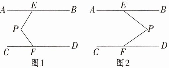 (2)如图 2,$ AB // CD $,请写出 $ \angle AEP $,$ \angle EPF $,$ \angle CFP $之间的数量关系,并说明理由.