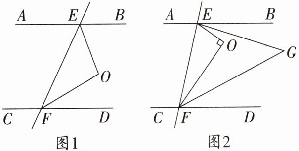 (2)如图 2,若 $ OE \perp OF $,$ EG $,$ FG $分别平分 $ \angle BEO $和 $ \angle DFO $,求 $ \angle G $的度数;