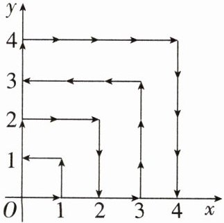 9. 如图,一个粒子在第一象限内及$x$轴、$y$轴上运动,在第一分钟,它从原点运动到点$(1,0)$,第二分钟,它从点$(1,0)运动到点(1,1)$,而后它接着按图中箭头所示在与$x$轴、$y$轴平行的方向上来回运动,且每分钟移动$1$个单位长度,那么在第$45$分钟时,这个粒子所在位置的坐标是______