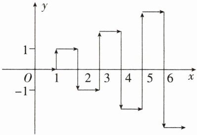 5. 如图,在平面直角坐标系中,动点$P$按箭头所示的方向做折线运动,第一次从原点运动到$(1,0)$,第二次从$(1,0)运动到(1,1)$,第三次从$(1,1)运动到(2,1)$,第四次从$(2,1)运动到(2,-1)$,第五次从$(2,-1)运动到(3,-1)$,第六次从$(3,-1)运动到(3,2)$,…,按这样的运动规律(向右始终保持运动一个单位长度,向上或向下比前一次的向下或向上都多运动一个单位长度),经过第$201$次,点$P$的坐标是(
