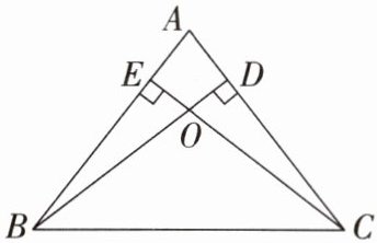 18. (8分)如图,在△ABC中,AB= AC,BD,CE是高,BD与CE相交于点O。