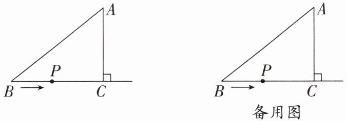 19. (14分)(宛城区校级期末)如图,在$Rt△ABC$中,$∠ACB = 90^{\circ}$,$AB = 5$ cm,$AC = 3$ cm,动点P从点B出发沿射线BC以2 cm/s的速度移动,设运动的时间为t s。