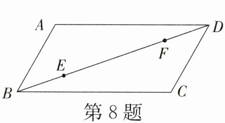 8. (绍兴)如图,在□ABCD中,AD= 2AB= 2,∠ABC= 60°,E,F是对角线BD上的动点,且BE= DF,M,N分别是边AD,边BC上的动点.下列四种说法:①存在无数个平行四边形MENF;②存在无数个矩形MENF;③存在无数个菱形MENF;④存在无数个正方形MENF.其中正确的个数是 (