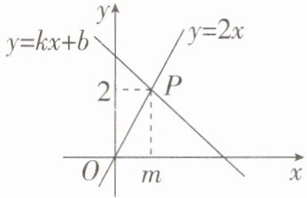 剖析:$\because直线y = 2x与y = kx + b相交于点P(m,2)$,$\therefore 2 = 2m$,$\therefore m = 1$,$\therefore P(1,2)$,$\therefore当x = 1$时,$y = kx + b = 2$,$\therefore关于x的方程kx + b = 2的解是x = 1$.
