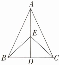 例2 如图,$D是\triangle ABC中BC$边上一点,$E是AD$上一点,$EB = EC$,$\angle BAE = \angle CAE$,求证:$\angle ABE = \angle ACE$。
