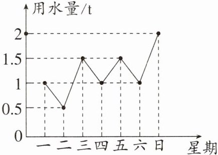 解:由统计图可知,一周各天用水量(单位:t)分别为:1,0.5,1.5,1,1.5,1,2。