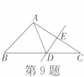 9. 如图,在$△ABC$中,DE 是 AC 的垂直平分线,$△ABC$的周长为 22 cm,$△ABD$的周长为 14 cm,则$AE= $