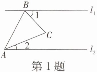 1. (荆州)如图,直线$l_{1}// l_{2},AB= AC$,若$∠BAC= 40^{\circ }$,则$∠1+∠2$的度数是(
