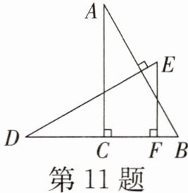 11. $Rt\triangle ABC和Rt\triangle DEF$如图放置,其中$\angle ACB = \angle DFE = 90^{\circ}$,$AB = DE且AB \perp DE$。若$AC = 6$,$EF = 4$,$CF = 3$,则$BD$的长为______