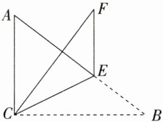 解:如图,取$CF$和$AB$的交点为$D$。$\because \angle ACB = 90^{\circ}$,$\therefore AB = \sqrt{AC^2 + BC^2} = \sqrt{3^2 + 4^2} = 5$。$\because S_{\triangle ABC} = \frac{1}{2}AB × CD = \frac{1}{2}AC × BC$,$\therefore CD = \frac{AC × BC}{AB} = \frac{12}{5}$,$\therefore FD = CF - CD = BC - CD = 4 - \frac{12}{5} = \frac{8}{5}$,$BD = \sqrt{BC^2 - CD^2} = \sqrt{4^2 - (\frac{12}{5})^2} = \frac{16}{5}$。设$BE = EF = x$,则$ED = \frac{16}{5} - x$。在$Rt\triangle EDF$中,$EF^2 = ED^2 + FD^2$,$\therefore x^2 = (\frac{16}{5} - x)^2 + (\frac{8}{5})^2$,解得$x = 2$,即$EB = 2$。