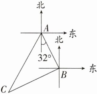 11. (合肥期末)某船从港口A出发沿南偏东32°方向航行15海里到达B岛,然后沿某方向航行20海里到达C岛,最后沿某个方向航行了25海里回到港口A,判断此时△ABC的形状,该船从B岛出发到C是沿哪个方向航行的,请说明理由.