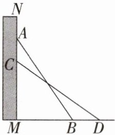 17. (8分)如图,把一个长为10 m的梯子$AB$斜靠在墙上,测得$BM = 6\ m$,梯子沿墙下滑到$CD$位置,测得$\angle ABM = \angle DCM$,$DM = 8\ m$,求梯子下滑的高度。