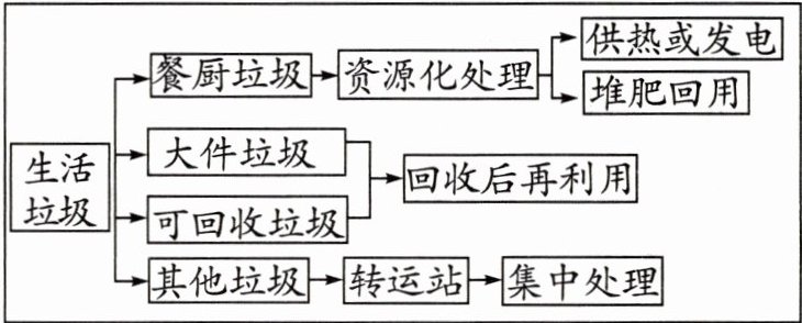 6. 用简洁的语言介绍一下下面的“生活垃圾分类处理流程图”,要求内容完整,表述准确,语言连贯。不超过80个字。______