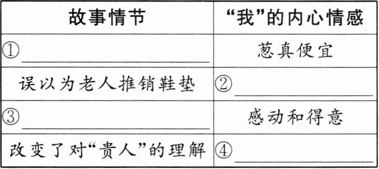 18. 按照事件发展的顺序,概括故事情节并梳理“我”的情感变化过程,将下面的表格填写完整。