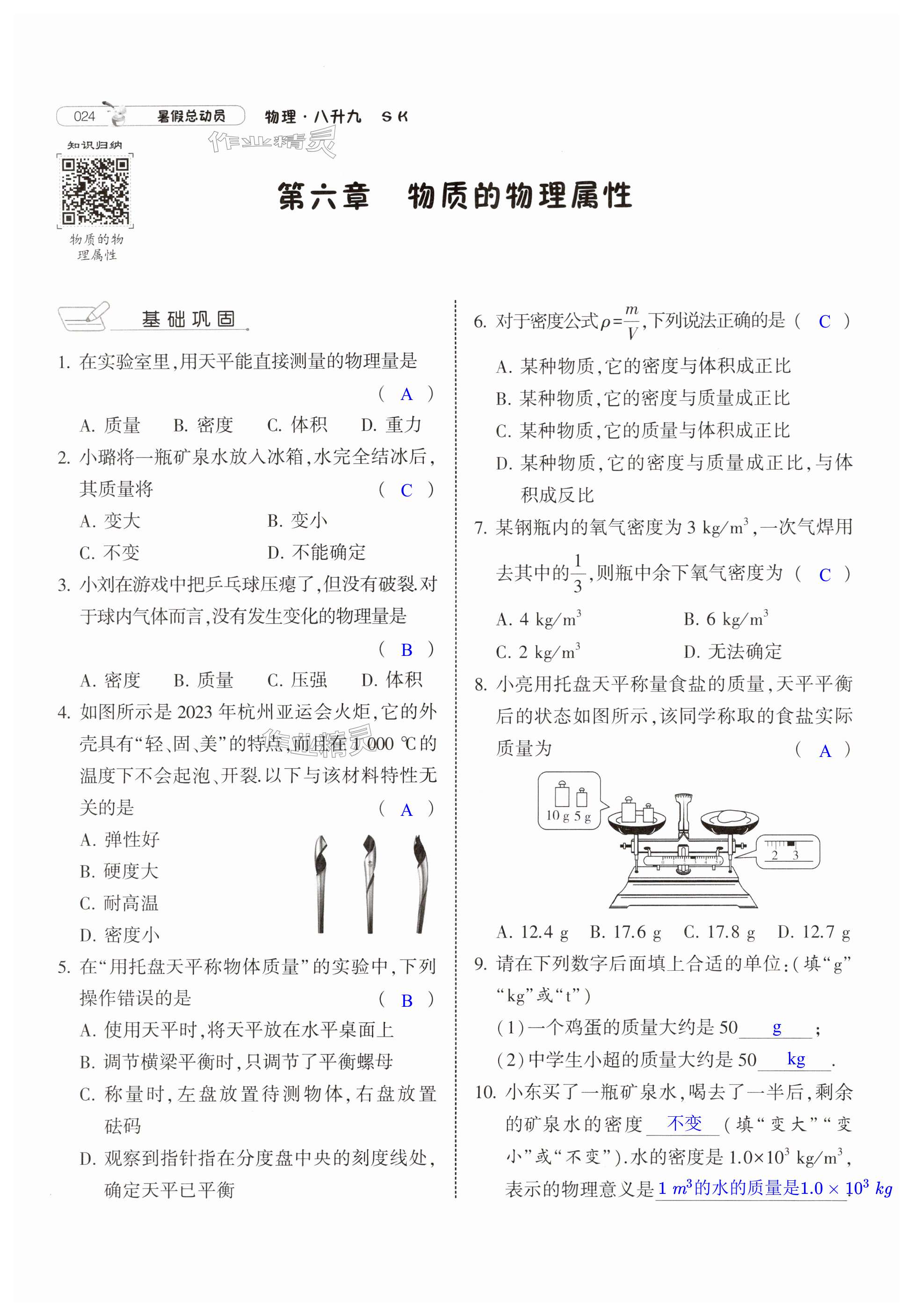 注:目前有些书本章节名称可能整理的还不是很完善,但都是按照顺序排列的,请同学们按照顺序仔细查找。练习册 2025年暑假总动员宁夏人民教育出版社八升九物理苏科版 答案主要是用来给同学们做完题方便对答案用的,请勿直接抄袭。