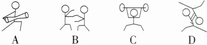2. 下面四幅画分别是体育运动长鼓舞、武术、举重、摔跤抽象出来的简笔画,其中沿某一条直线折叠后,直线两旁的部分能够互相重合的图形是(