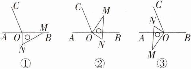 (3)将图①中的三角板绕点O顺时针旋转至图③,使ON在$∠AOC$的内部,请探究$∠AOM与∠NOC$之间的数量关系,并说明理由.