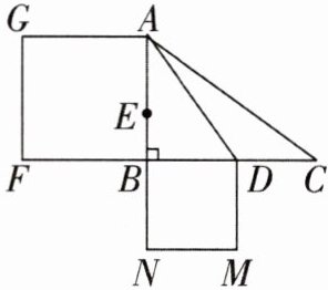 【拓展】如图,在$\triangle ABC$中,$∠ABC= 90^{\circ}$,$BC= 12$,点$D是边BC$上的点,在边$AB上取一点E$,使$AE= CD$,设$AE= x(x>0)$. 分别以$AB$,$BD为边在\triangle ABC外部作正方形ABFG和正方形BDMN$,连接$AD$. 若$BE= 4$,$\triangle ABD$的面积为10,直接写出正方形$ABFG和正方形BDMN$的面积和.
