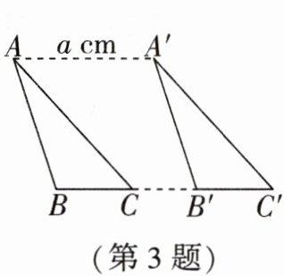 3. 如图,$△ABC$沿BC方向平移a cm后,得到$△A'B'C'$,已知$BC= 6cm,BC'= 17cm$,则a的值为 (