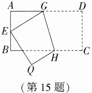 15. 如图,将长方形$ ABCD 沿 GH $折叠,点$ C 落在点 Q $处,点$ D 落在 AB 边上的点 E $处,若$ \angle AGE = 32 ^ { \circ } $,则$ \angle GHC = $
