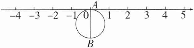 21. 如图,半径为 1 个单位的圆片上有一点 $ A $ 与数轴上的原点重合,$ AB $ 是圆片的直径。