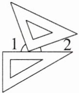 2. 一副三角板按如图方式摆放,且$\angle 1的度数比\angle 2的度数大50^{\circ}$,若设$\angle 1 = x^{\circ}$,$\angle 2 = y^{\circ}$,则可得到的方程组是(