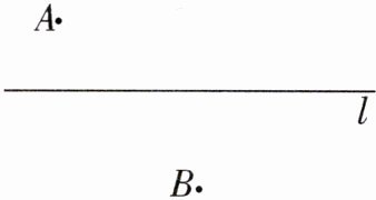 17. 如图,在公路 l 两旁有 A,B 两村庄,要在公路边建一车站 C,使 C 到 A 和 B 的距离之和最小,请找出 C 点的位置,并说明理由。