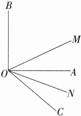 18. 已知:如图,∠AOB 是直角,∠AOC = 40°,ON 是∠AOC 的平分线,OM 是∠BOC 的平分线。