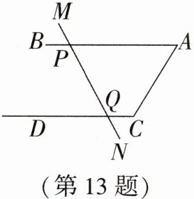 13. 如图,已知∠A + ∠C = 180°,∠APM = 118°,则∠CQN =