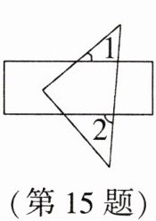 15. 将一个含有 45°角的直角三角板摆放在矩形上,如图所示,若∠1 = 40°,则∠2 =