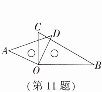 11. 如图,将一副三角板叠在一起,使它们的直角顶点重合于 O 点,且∠AOB = 155°,则∠COD =