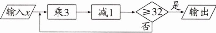因为第一次运算不输出,所以$3x - 1 < 32$,解得$x < 11$