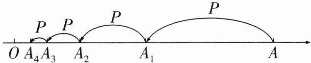15. 如图,一质点$P$从距原点1米的$A$点处向原点方向跳动,第一次跳动到$OA的中点A_{1}$处,第二次从$A_{1}点跳动到OA_{1}的中点A_{2}$处,第三次从$A_{2}点跳动到OA_{2}的中点A_{3}$处,如此不断地跳动下去,则至少第____次跳动后,该质点到原点$O$的距离小于1毫米.