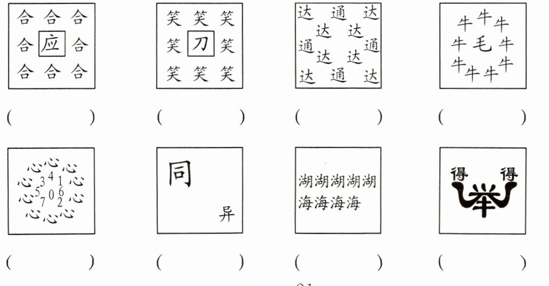 里应外合 笑里藏刀 四通八达 九牛一毛 心中有数 大同小异 五湖四海 一举两得