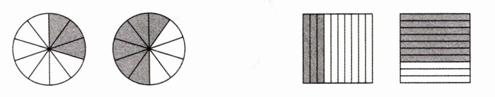 2. 把下面各图中涂色的部分用分数和小数表示出来。