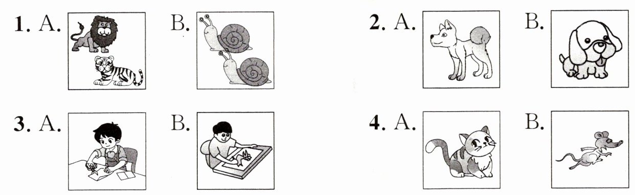三、老师组织大家进行动物介绍。选择句中画线单词的反义词补全介绍。