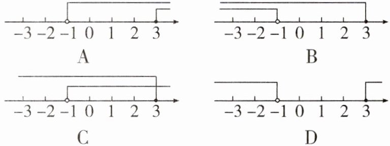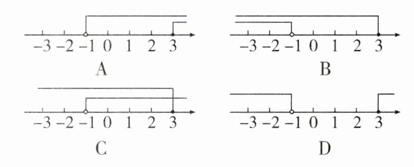 3. 不等式组$\begin{cases}x + 1>0,\\2x - 6\leqslant0\end{cases}$的解集在数轴上表示正确的是 ( )