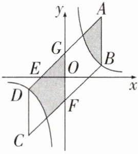 19. (8分)如图,点$ A(3, 5) $关于原点O的对称点为点C,分别过点A,C作y轴的平行线,与反比例函数$ y = \frac{k}{x}(0 < k < 15) $的图像交于点B,D,连接AD,BC,AD与x轴交于点$ E(-2, 0) $.