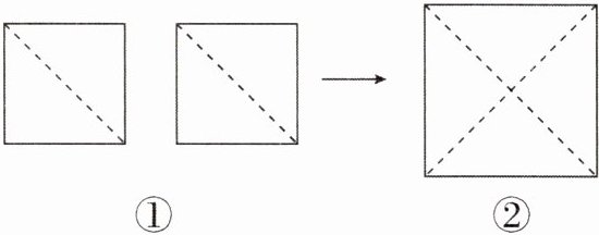 20. (8分)【综合与实践】如图,把两个面积均为$18cm^2$的小正方形纸片分别沿对角线裁剪后拼成一个大的正方形纸片。