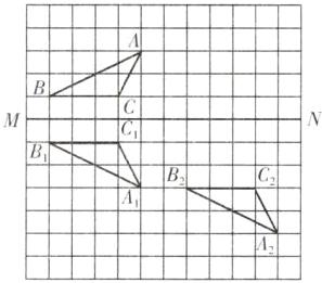(1)作出△ABC关于MN对称的△A₁B₁C₁;
