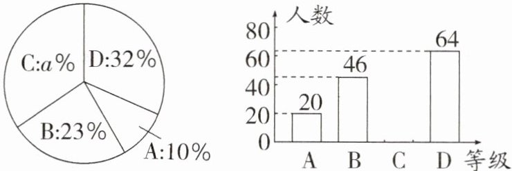 (2)图中,$a=$_______,C等级所占的圆心角的度数为_______度;