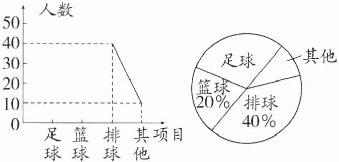 (3)爱好足球、篮球的人数分别为 $30\% × 100 = 30$ (人), $20\% × 100 = 20$ (人),然后描点、连线即可(图略)。