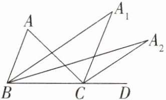 16. 如图,$ \angle A C D $ 是 $ \triangle A B C $ 的外角,$ \angle A B C $ 的平分线与 $ \angle A C D $ 的平分线交于点 $ A _ { 1 } $,$ \angle A _ { 1 } B C $ 的平分线与 $ \angle A _ { 1 } C D $ 的平分线交于点 $ A _ { 2 } $,$ \cdots $,$ \angle A _ { n - 1 } B C $ 的平分线与 $ \angle A _ { n - 1 } C D $ 的平分线交于点 $ A _ { n } $,设 $ \angle A = \theta $,则:(1)$ \angle A _ { 1 } = $________;(2)$ \angle A _ { n } = $________。