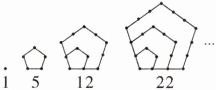 称图中的数 1,5,12,22,$ \cdots $ 为五边形数,则第 6 个五边形数是________。
