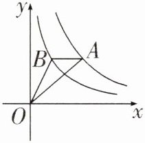 14. 反比例函数 $y=\frac {4}{x}$ 与 $y=\frac {2}{x}$ 在第一象限内的图像如图所示,作一条平行于 x 轴的直线分别交图像于 A,B 两点,连接 OA,OB,则 $\triangle AOB$ 的面积为____.