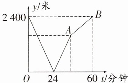 (2) $ \because $ 甲从学校去图书馆,乙从图书馆回学校,甲、乙两人都匀速步行且同时出发,$ t = 24 $ 分钟时甲、乙两人相遇,